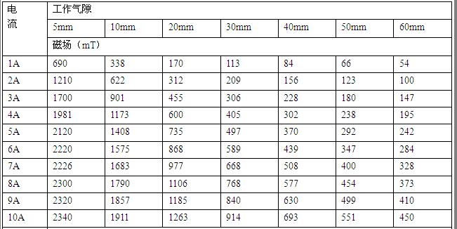 電磁鐵工作氣隙磁場是根據(jù)電磁感應(yīng)原理,電流源對磁場線包供直流電流,并由導磁回路聚磁產(chǎn)生磁場,調(diào)節(jié)氣隙大小,改變極面直徑,調(diào)整工作電流均可改變工作氣隙磁場的大小強弱。